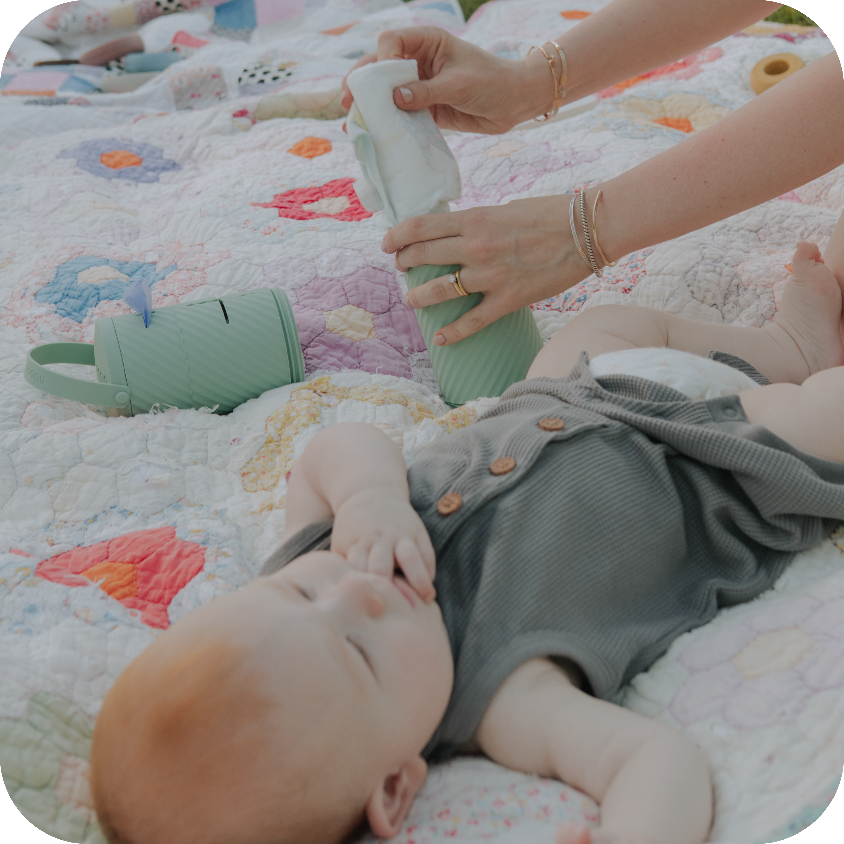 Diaperbuddy takes the stress out of diaper changes! Its convenient home-loaded system makes changing your baby quick and simple, so you can get back to your day with ease.